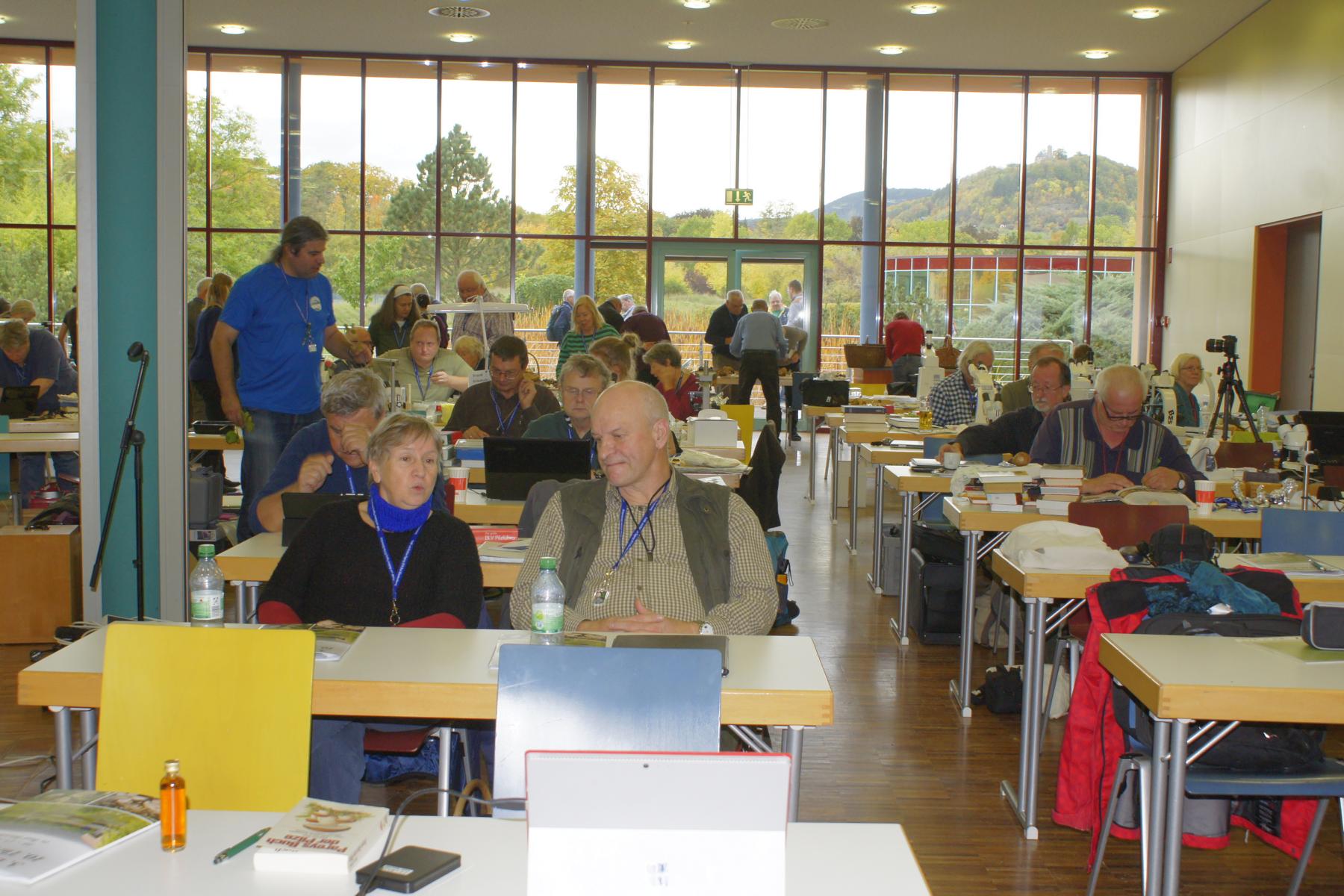 Zum Tagungsbeginn am 10.10.2019 lagen 106 verbindliche Anmeldungen – nicht nur aus dem „Boletus-Gebiet“, sondern aus ganz Deutschland – vor. Zusätzlich kamen einige Tagesgäste, die nicht offiziell gemeldet waren. Einige waren auch schon vorher angereist, um die Natur des geologisch vielfältigen Gebietes etwas länger genießen zu können. Die Voraussetzungen für ein reichhaltiges Pilzwachstum waren im Vergleich zu den letzten zwei Jahren Dank der voraus gegangenen Niederschläge außerordentlich günstig. Zum Mittag des offiziellen Anreisetages gab es bereits die erste geführte Exkursion mit reger Teilnahme. Auch an den folgenden zwei Tagen wurden vormittags je vier geführte Exkursionen – vornehmlich in Naturschutzgebiete – angeboten, von denen niemand enttäuscht zurückkehrte.