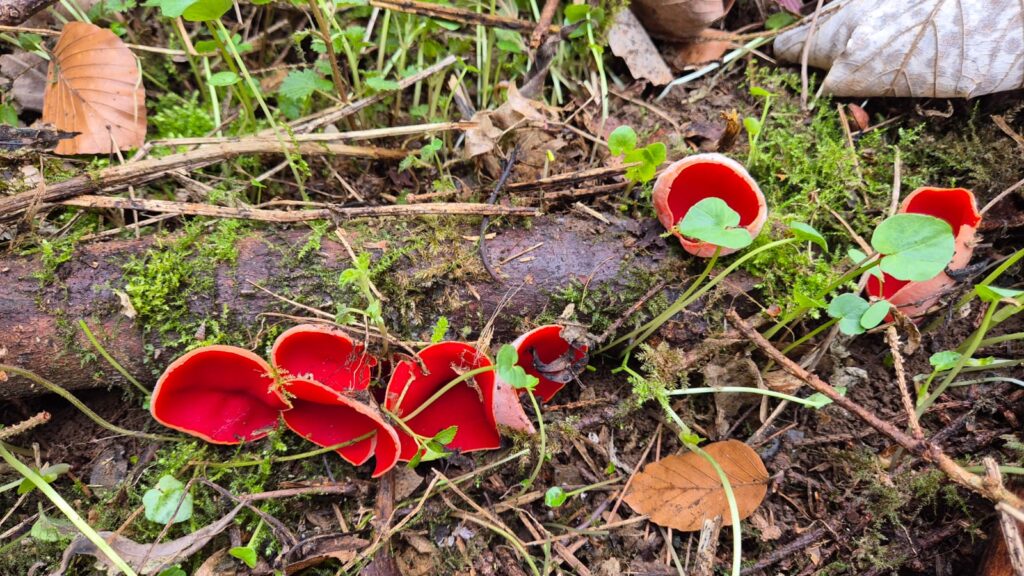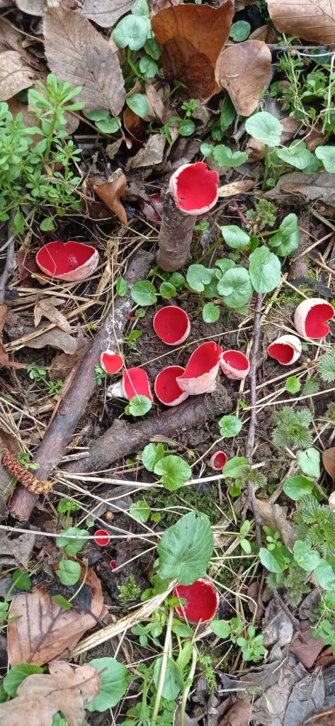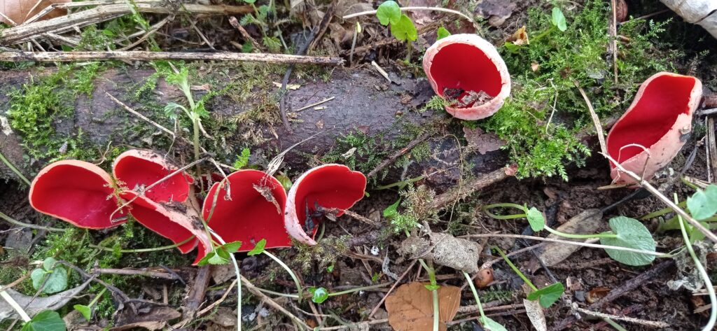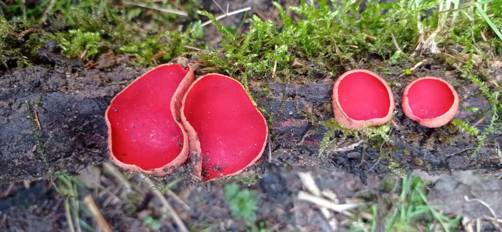 In Deutschland gibt es drei Arten dieser roten Kelchbecherlinge.