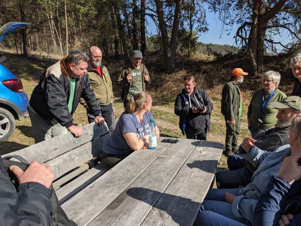 Die zweite Fundstelle befindet sich am Waldrand der Uhlstädter Heide bei Gorndorf. Nach kurzem Fußmarsch in den Wald erreichten wir im Eichental die Objekte der Begierde. Am 14.03. zählten wir 58 Becherchen auf Totholz Weide (Salix sp.)